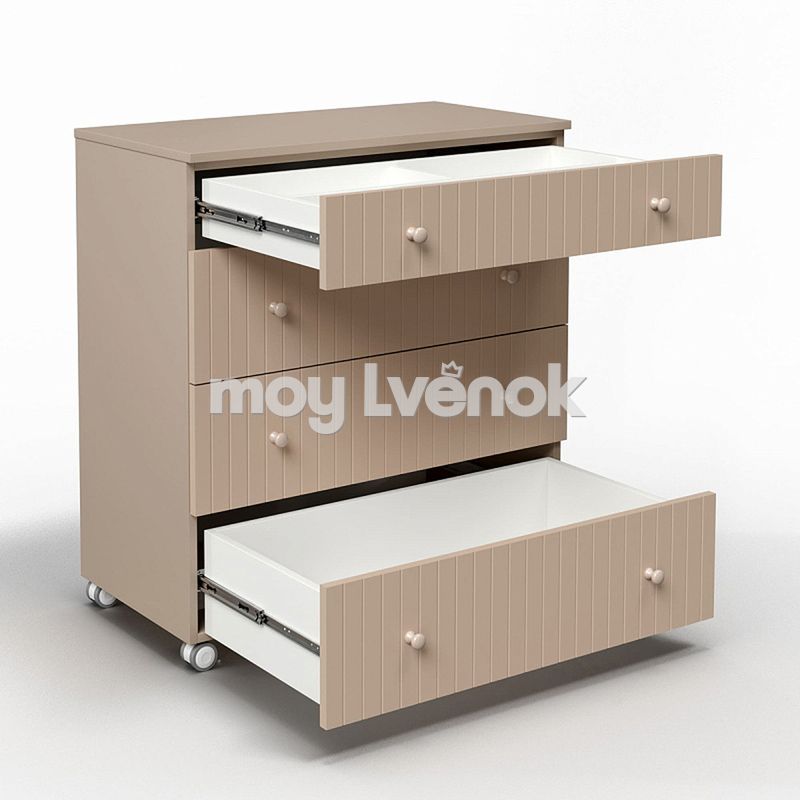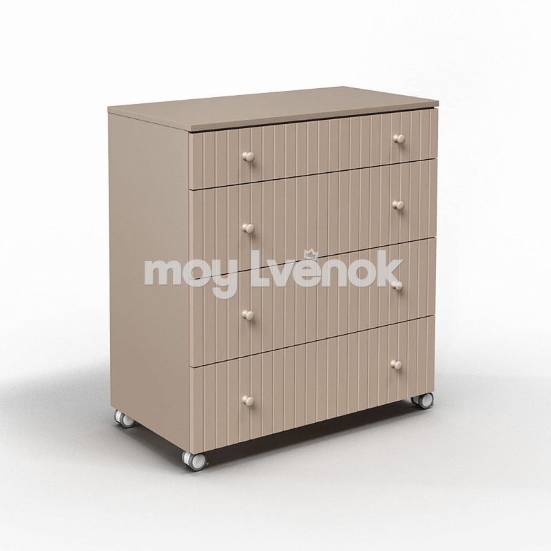 - Фасады имеют вертикальную фрезеровку, которая придает комоду дополнительного шарма.