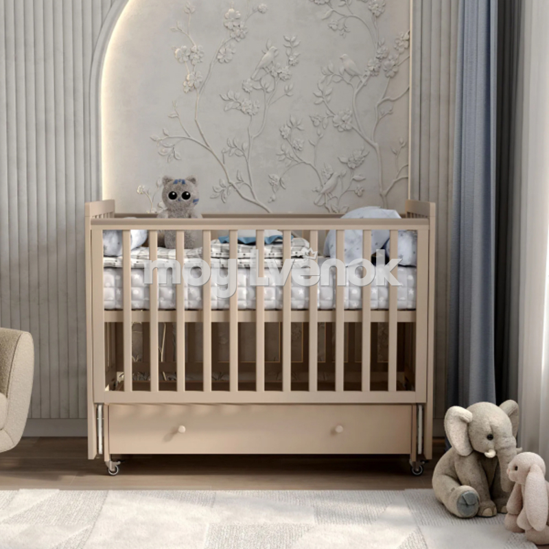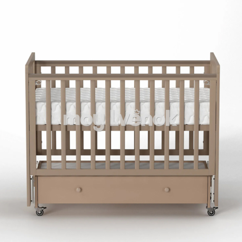 - В комплекте с кроваткой идет универсальный маятниковый механизм (продольного или поперечного качания), что позволяет ставить кроватку в разных положениях в комнате и укачивать малыша без затруднений.