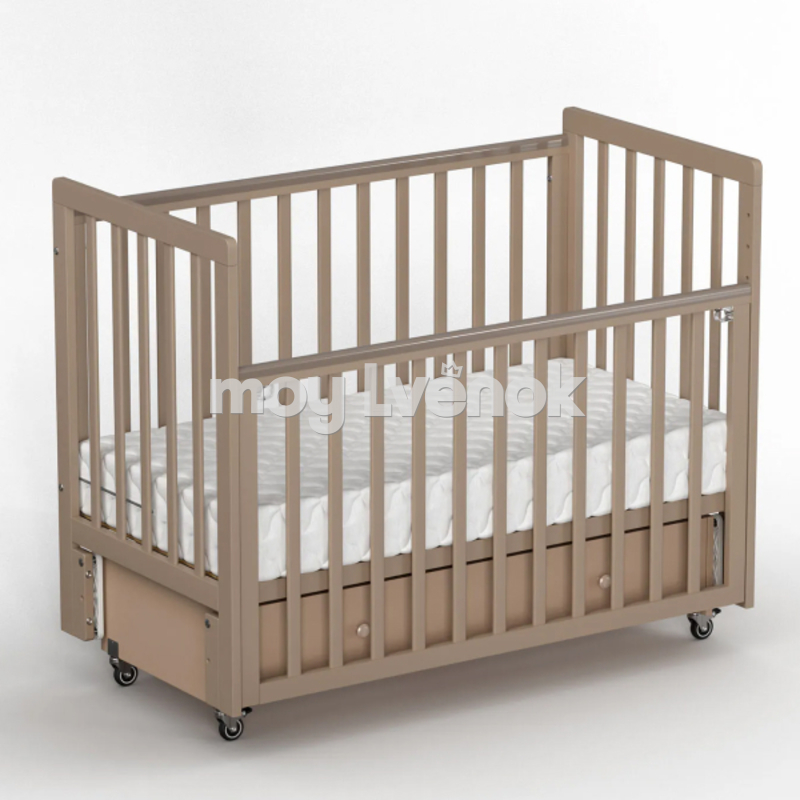 - Высота уровней ложа для кроватки на колёсах: 34 см, 41 см, 44 см, 51 см, 54 см, 60 см, 63 см