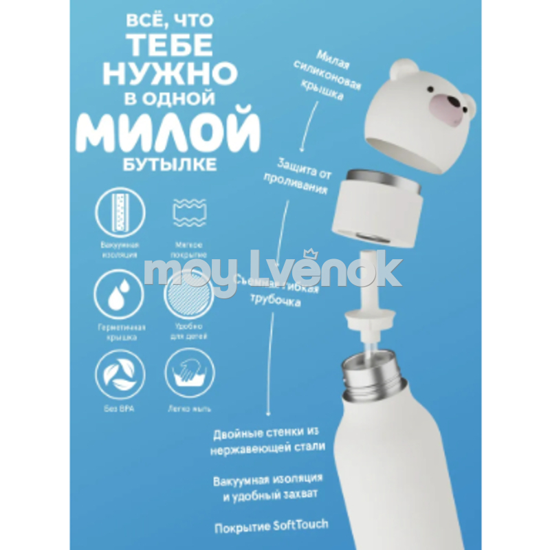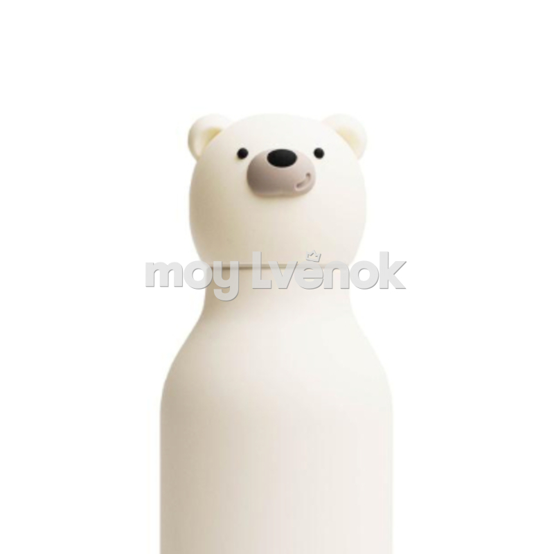 Белый термос с полярным медведем на крышке — объёмная силиконовая голова с круглыми ушами превращает питьё в арктическое путешествие. Двустенная конструкция держит температуру напитков, мягкий корпус удобно держать, соломинка в комплекте. Северный хищник для южных широт. Коллекционная серия для тех, кто ценит силу и спокойствие в одном флаконе.