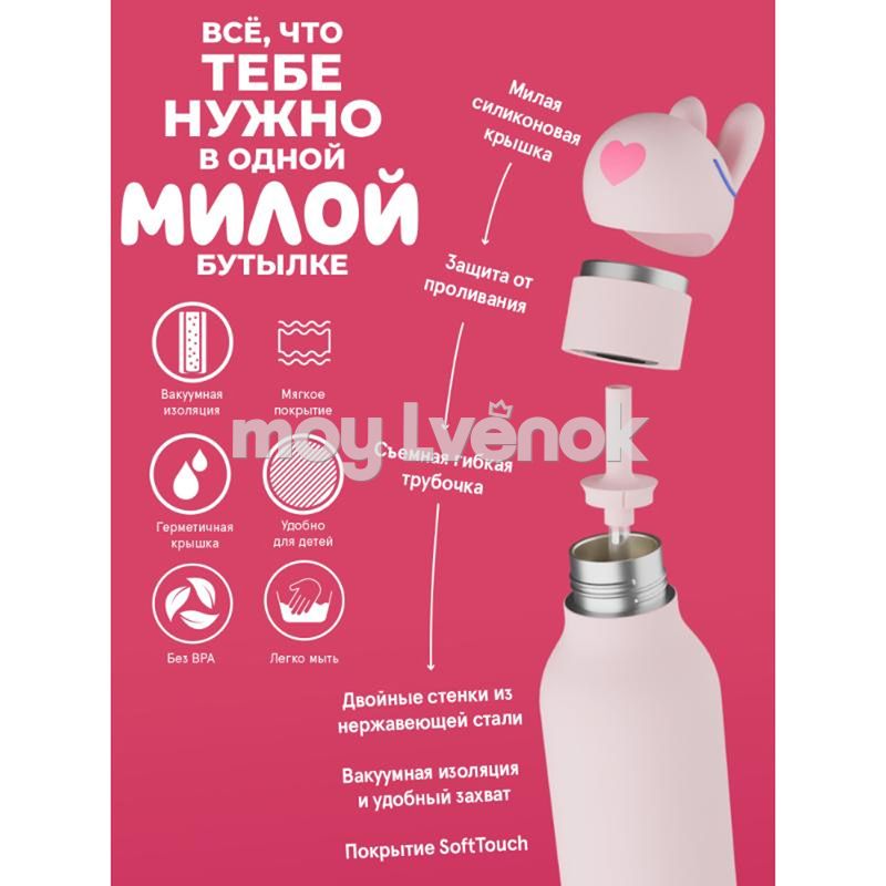 Белый термос с ушастым кроликом на крышке — объёмная силиконовая голова с длинными ушами делает каждый глоток веселее. Двустенная конструкция держит температуру, мягкий корпус уверенно лежит в руке, соломинка упрощает питьё на ходу. Весенний дизайн для всех сезонов. Коллекционная серия для тех, кто не утратил способность радоваться мелочам.