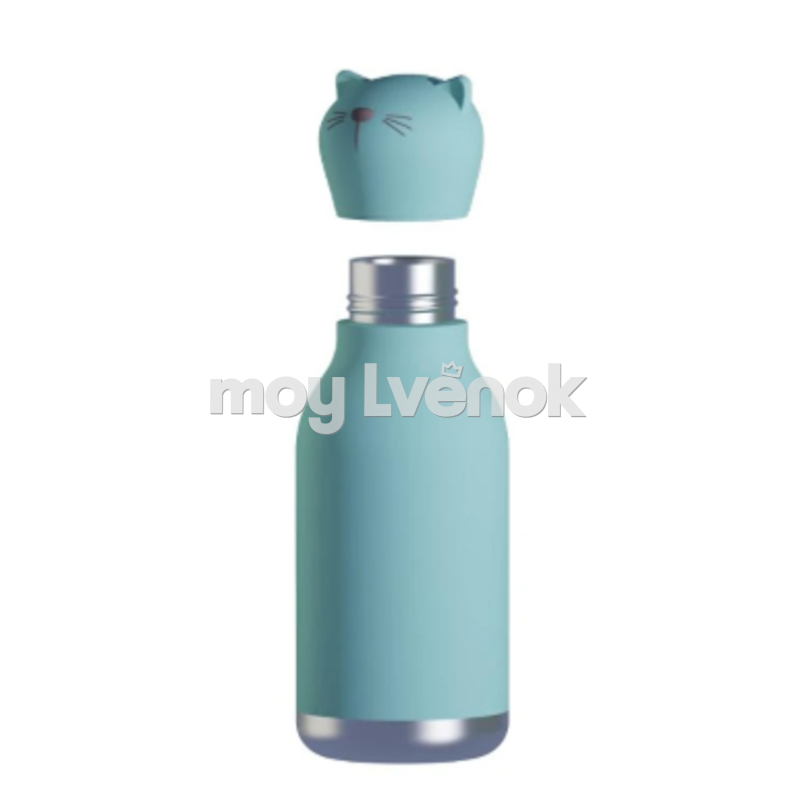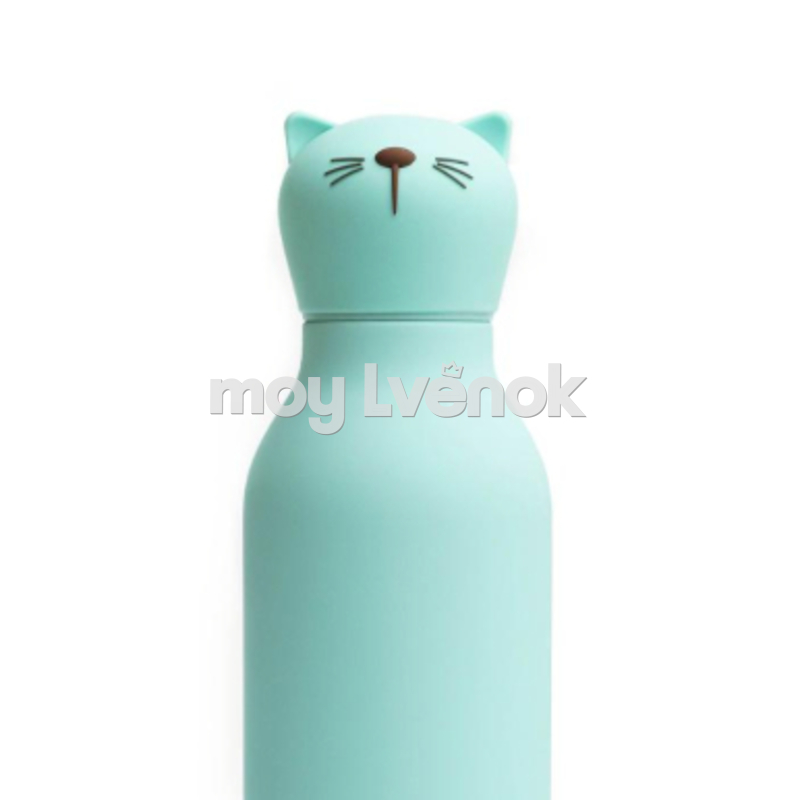 Термос с силиконовой головой кошки на крышке — объёмная фигурка с ушами и усами превращает питьё в общение с любимцем. Вакуумная изоляция надёжно сохраняет температуру, прорезиненная поверхность не скользит в ладони, встроенная соломинка делает использование комфортным. Для любителей кошек и всех, кто ценит независимость в характере вещей.