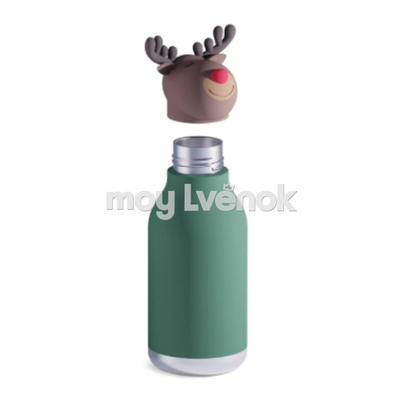 Новогодний термос с силиконовой головой олененка на крышке — объёмная фигурка превращает обычную бутылку в праздничный аксессуар. Вакуумная изоляция надёжно сохраняет температуру напитков, прорезиненный корпус удобно лежит в руке, встроенная соломинка позволяет пить не откручивая крышку. Для тех, кто не прячет новогоднее настроение даже в школе или офисе. Коллекционная серия с узнаваемым дизайном.