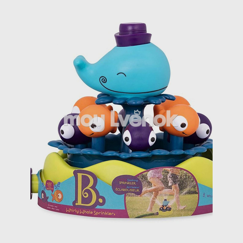- Поступающая вода активирует карусель с китом и 8 рыбками, они начнут двигаться и разбрызгивать воду в разные стороны.