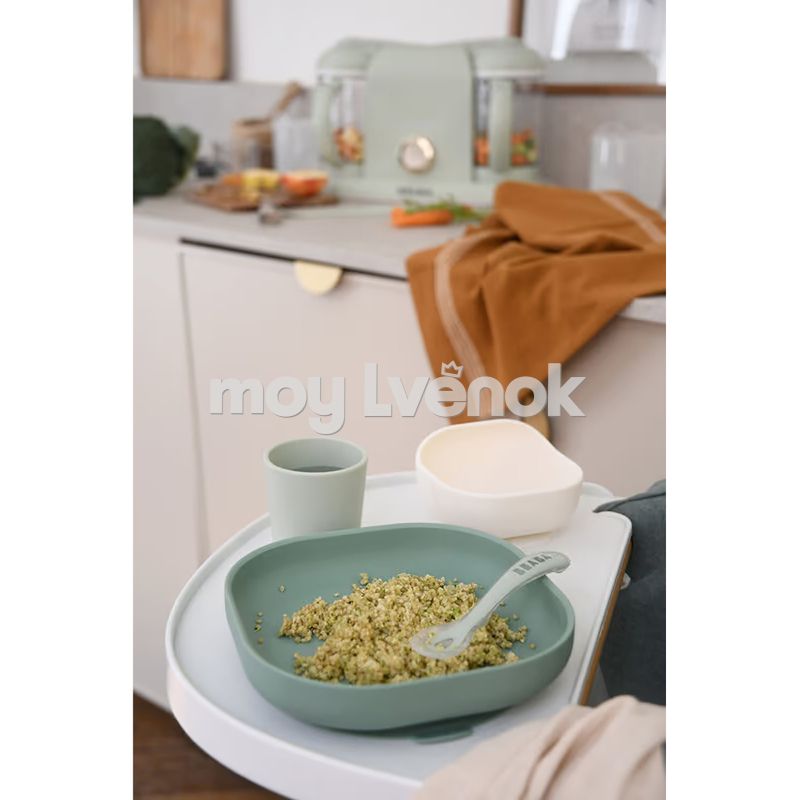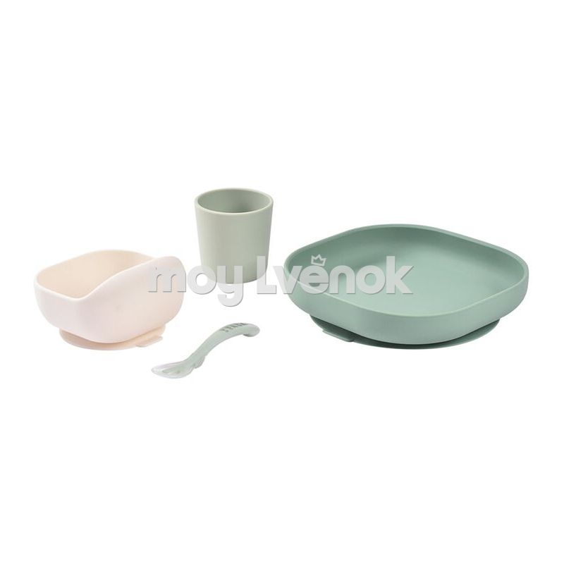 Beaba 913592 Набор посуды: 2 тарелки, стакан, ложка, силикон. VERT SAUGE COFFRET REPAS SILIC VERT SA