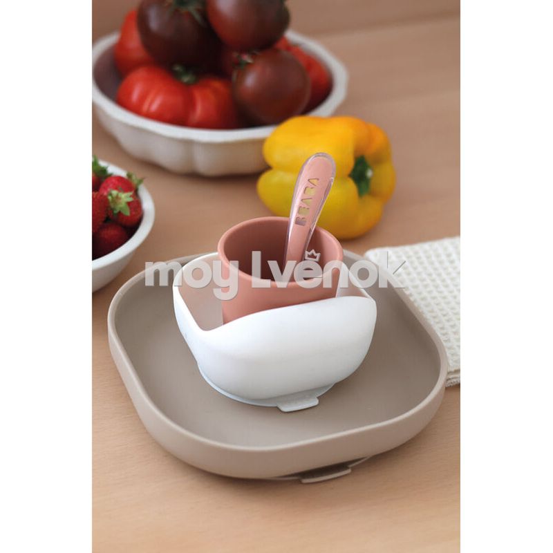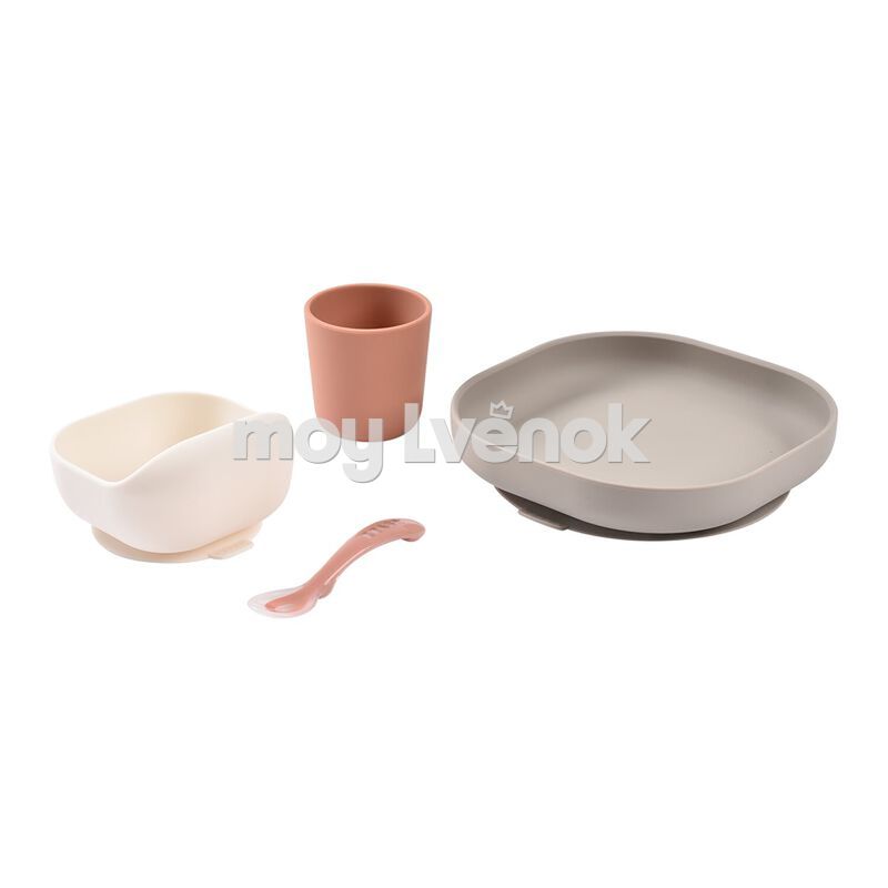 Beaba 913602 Набор посуды: 2 тарелки, стакан, ложка, силикон. TERRACOTTA