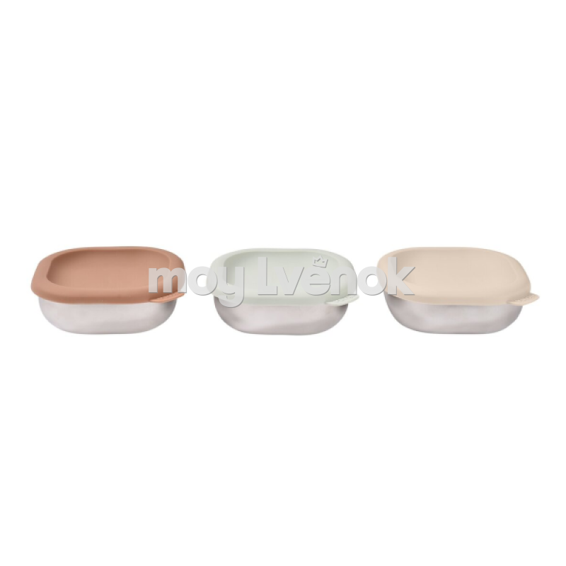 Beaba Набор из 3 контейнеров для ланча, из нержавеющей стали, с крышкой из силикона. 914030