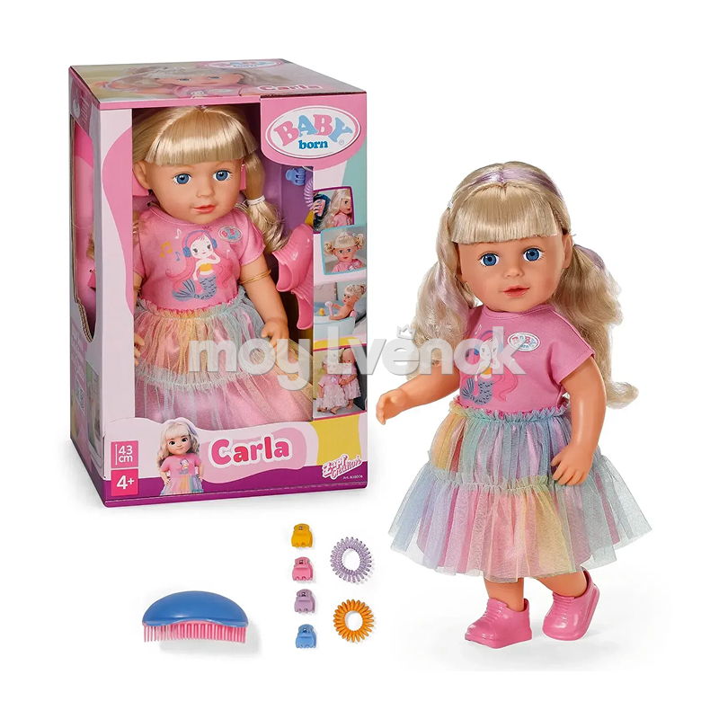 Встречайте Карлу — старшую сестру популярной куклы Эммы из мультсериала BABY born! Эта стильная кукла станет настоящей музой для маленьких парикмахеров и любителей моды.