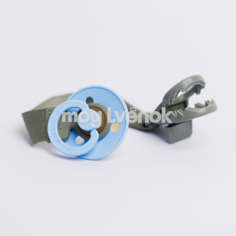 Держатель очень прост в использовании: прикрепите клипсу к одежде малыша, и пустышка больше не потеряется и не упадет на пол. К нему можно подобрать пустышку BIBS с аналогичным принтом.
