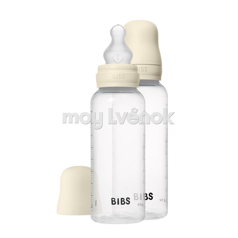 Набор из двух невесомых бутылочек для кормления, воронки, кольца против протекания, сменной крышки и латексных сосок BIBS. Бутылочку из премиального полипропилена очень удобно держать в маленьких ручках благодаря низкому весу.