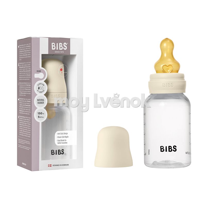 BIBS - Ivory, 5016216, Бутылочка с латексной соской, медленный поток 150 мл. 05340