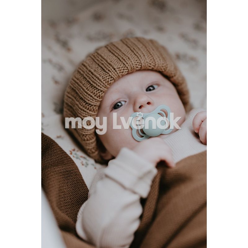 Пустышка Supreme имеет оригинальную фигурную накладку и сосок симметричной плоской каплевидной формы, который способствует правильному расположению языка и развитию челюстно-лицевых мышц малыша.