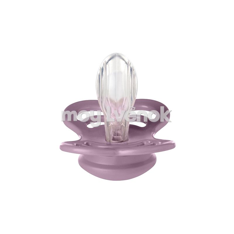 Пустышка Supreme имеет оригинальную фигурную накладку и сосок симметричной плоской каплевидной формы, который способствует правильному расположению языка и развитию челюстно-лицевых мышц малыша.