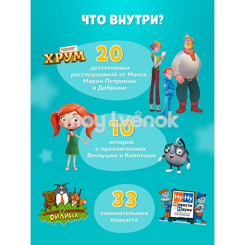 – 15 часов Детского радио без интернета. Эксклюзивные песни, сказки, познавательные подкасты и радиопостановки от «Детского радио» с любимыми героями: Веснушкой и Кипятошей, Максом, Марией Петровной и Добрыней из детективного агентства «Хрум».