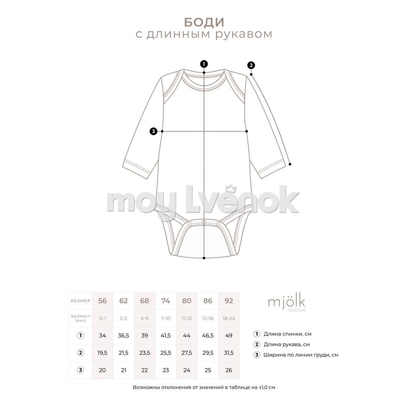 Боди Mjölk [мьёльк] с длинным рукавом выполнен из тонкого 100% трикотажного хлопка.