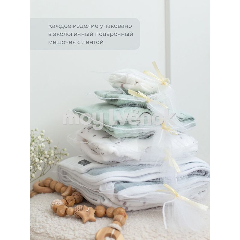 - В сопутствующих товарах можно подобрать изделия в комплект с таким же принтом: мягкую шапочку с узелком, двусторонний плед, сет пелёнок в тон или яркий комбинезон.