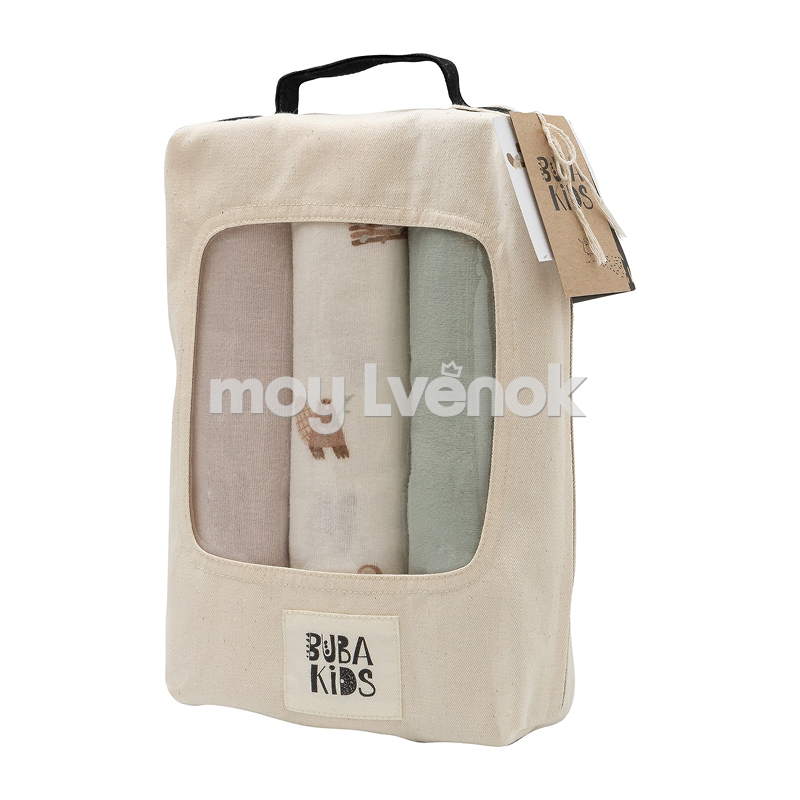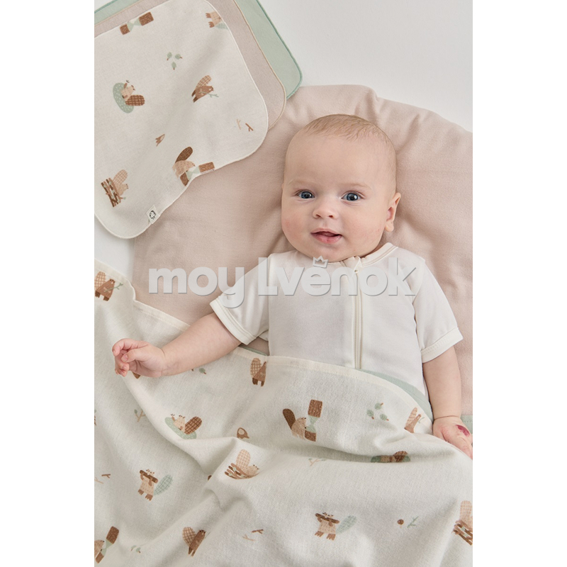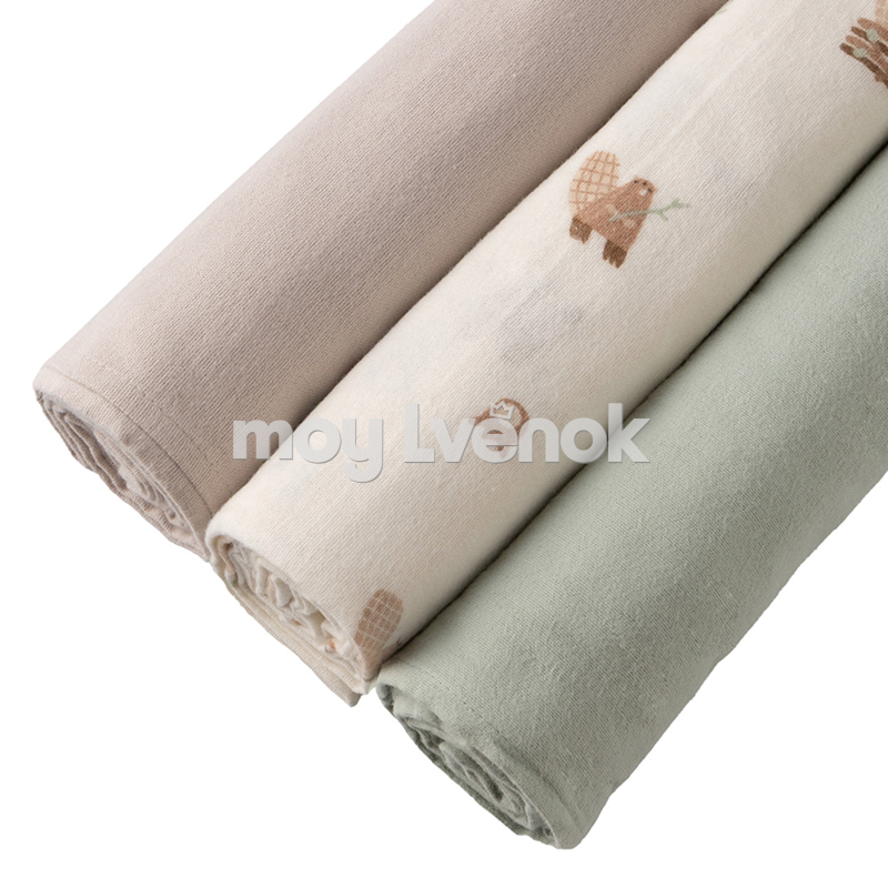 BUBA KIDS Пелёнки фланелевые , 3 шт., Бобры на хуторе/ Речная вода/Бежевый, 95х115 BKFLSW5