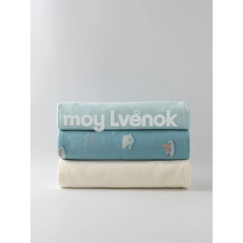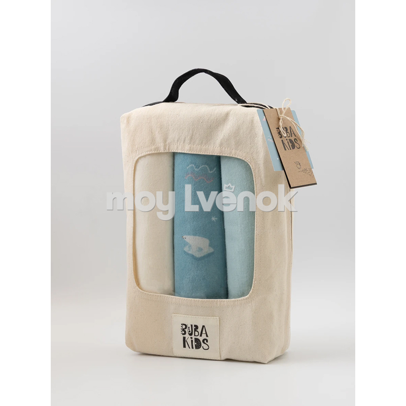 BUBA KIDS Пелёнки муслиновые, 3 шт., Русская Арктика/Сливочный/Бирюза, 95х115 BKFLSW6