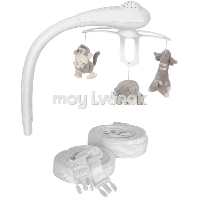 - Съемные подвесные игрушки будут вращаться над головой, привлекая внимание и развивая мелкую моторику.