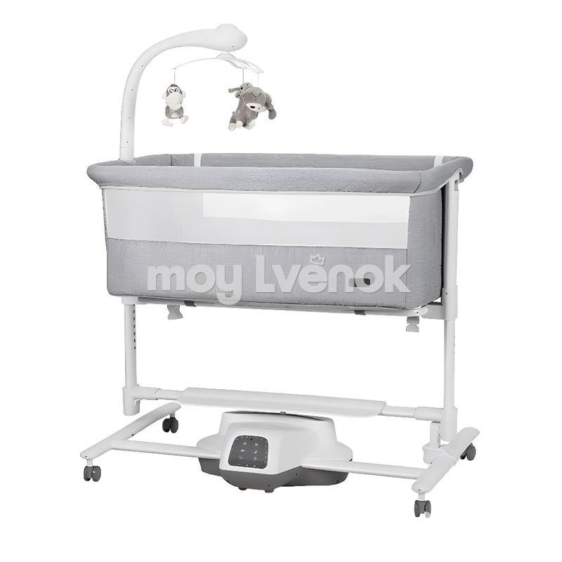 Кроватка автоматически мягко и плавно покачивает малыша, когда он начинает беспокоиться, благодаря умному датчику движения. Система чутко реагирует на любое волнение и ласково убаюкивает младенца, даря ему комфорт и защиту.