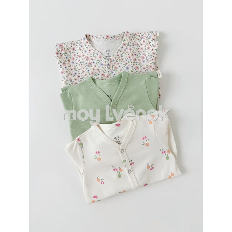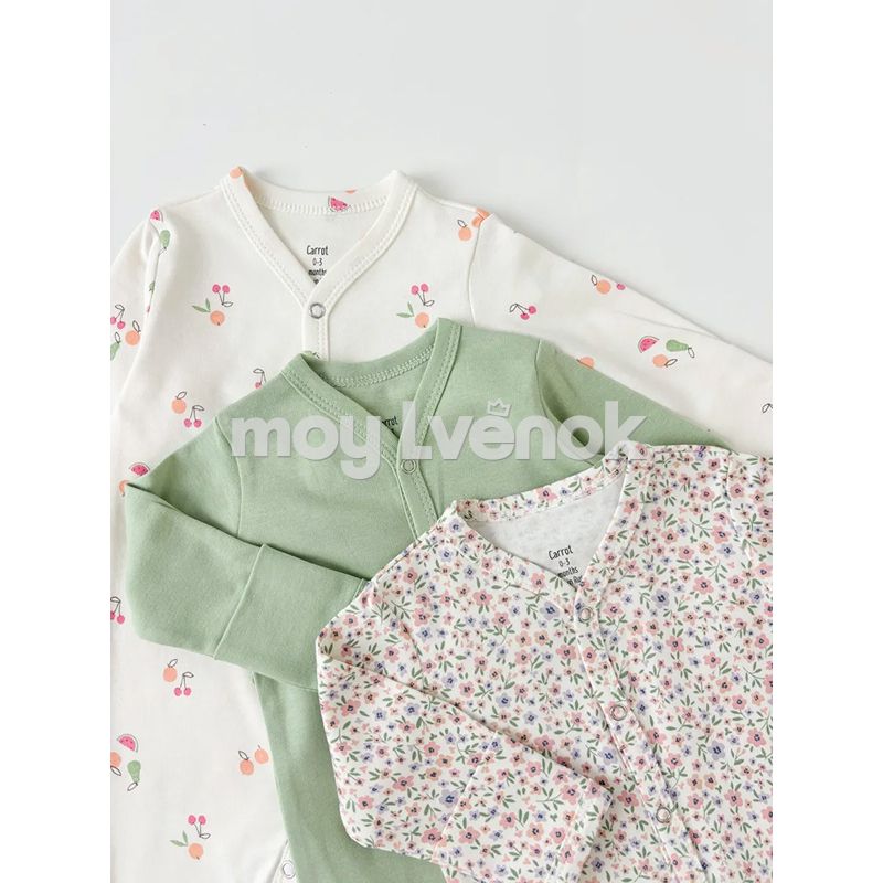 Carrot 10002285 Набор из трех комбинезонов "Фрукты" с манжетом (зелёный)