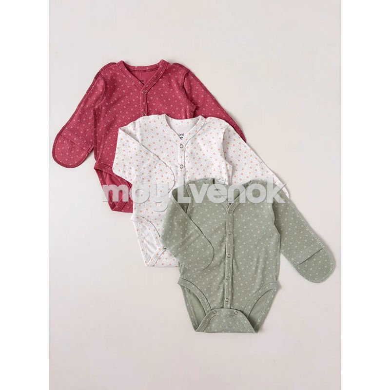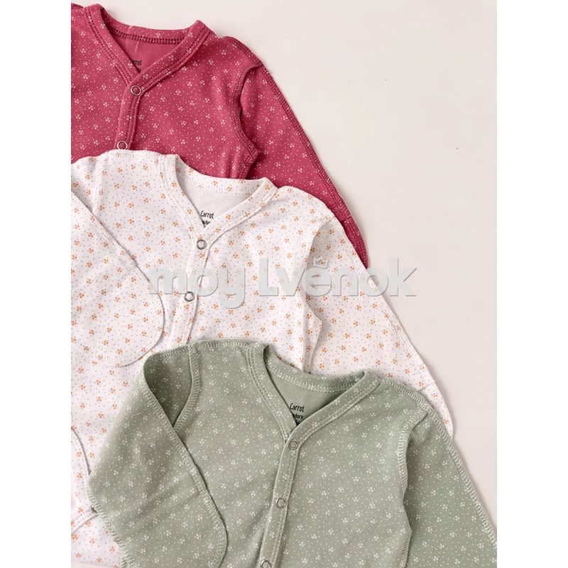 Carrot 10002371 Набор из трех боди "Цветочек-горошек" застёжка спереди (бордовый)
