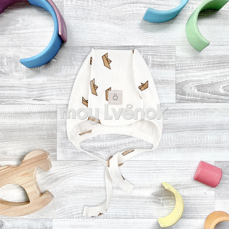 Чепчик Mjölk [мьёльк] Бумажные кораблики из нежного трикотажа идеально подойдёт для новорожденных деток и малышей.