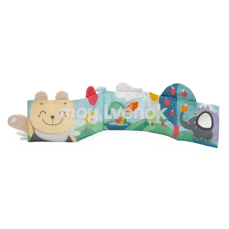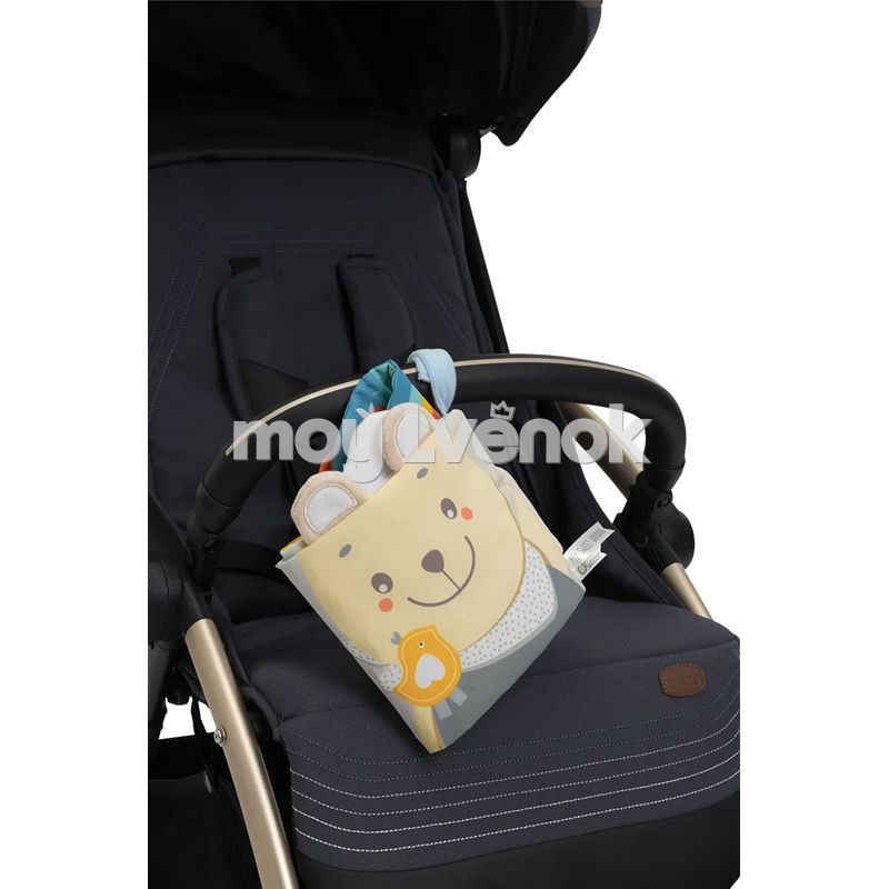 Мягкая книжка с множеством активностей развлечет малыша дома или в коляске.