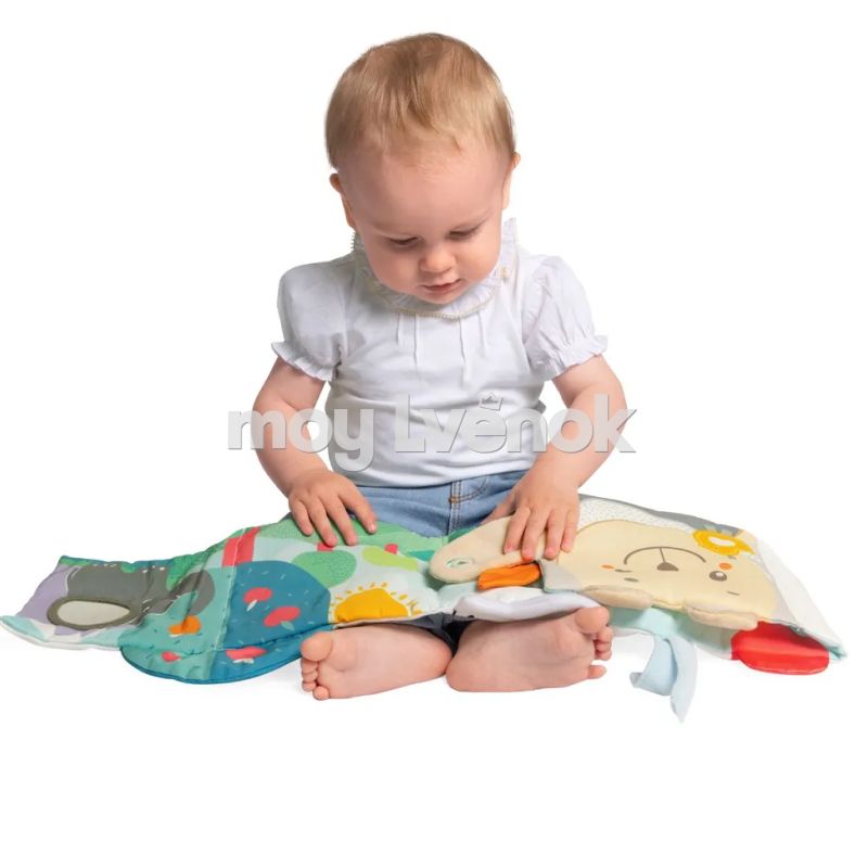 - Книжка с активностями: когда малыш начинает сидеть, книга превращается в интерактивное развлечение с сенсорными элементами и увлекательными функциями