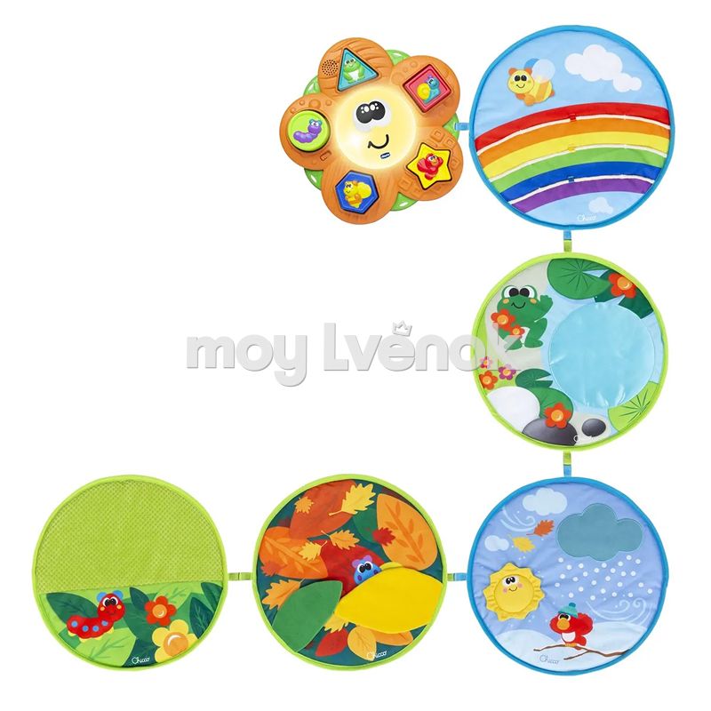 - 5 тканевых дисков (4 сезона и 1 радуга): каждый диск характеризуется особой поверхностью, которая помогает ребенку развить определенные навыки.