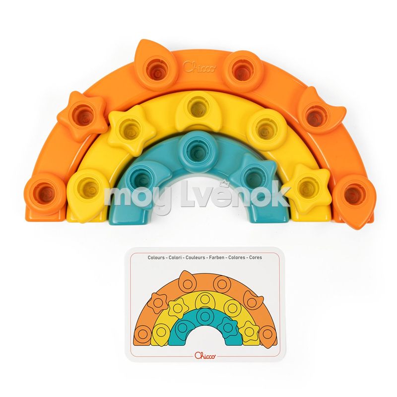 Игрушка-сортер "Радуга" представляет собой многофункциональный развивающий набор для детей от 1 до 3 лет, созданный с учетом принципов педагогики Монтессори при участии итальянских специалистов (ANPE). Яркая деревянная радуга с семью разноцветными дугами предлагает два варианта игры: свободное конструирование, развивающее воображение и креативность, и обучающую сортировку с использованием карточек-подсказок, которые знакомят с цифрами, цветами и формами.