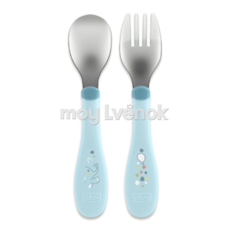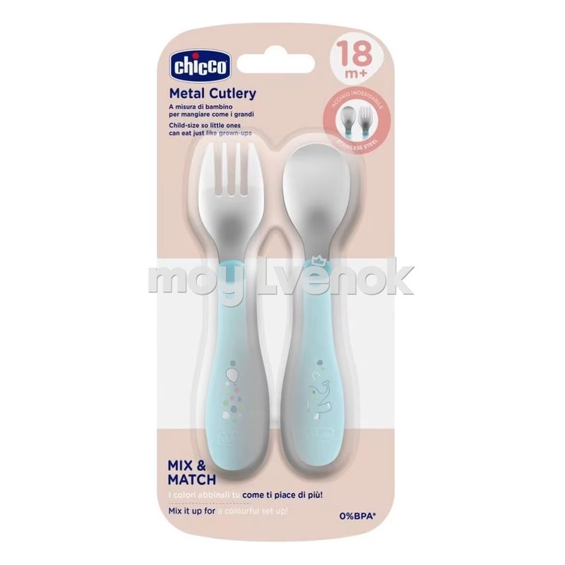 CHICCO Набор столовых приборов Metal Cutlery 18м+ (ложка, вилка), голубой