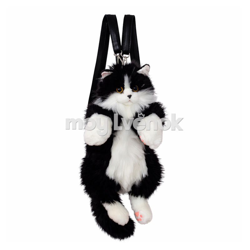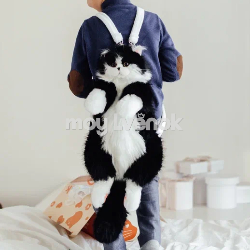 Мягкий плюшевый рюкзак в виде милого чёрного котика — стильный и необычный аксессуар, который сразу привлекает внимание.
