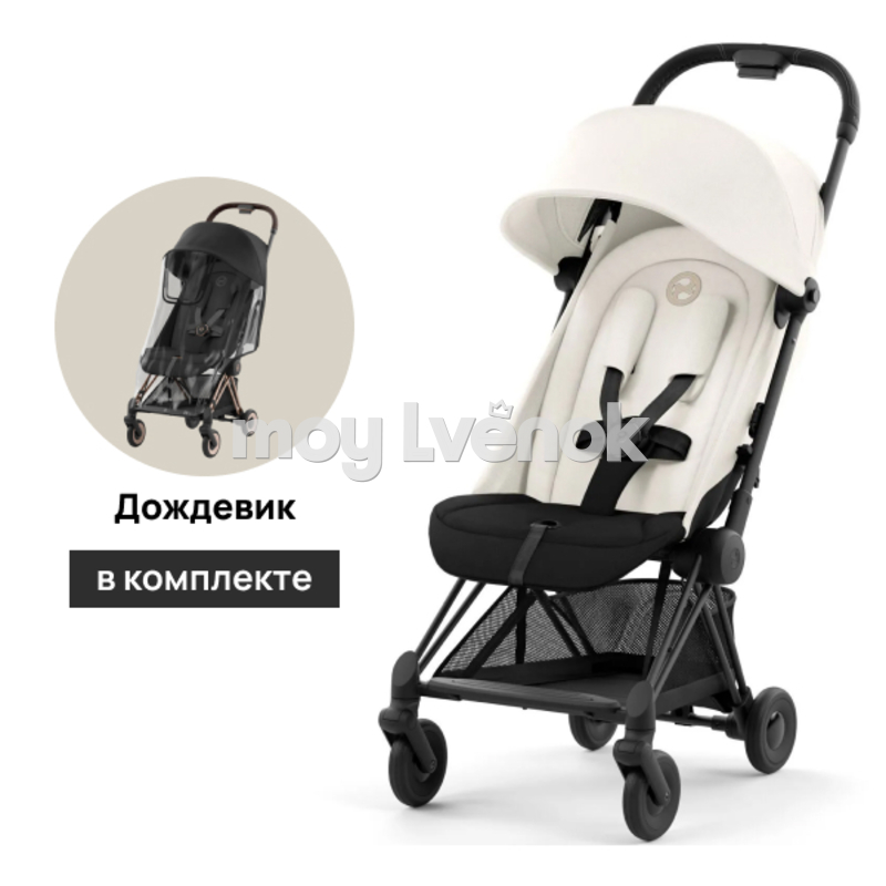 Детская коляска Cybex Coya шасси Matt Black Off White + дождевик