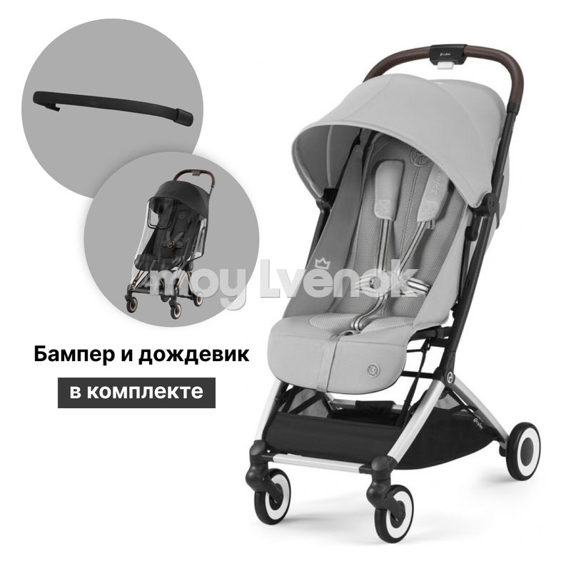 Детская коляска Cybex Orfeo с дождевиком и бампером BLK Fog grey