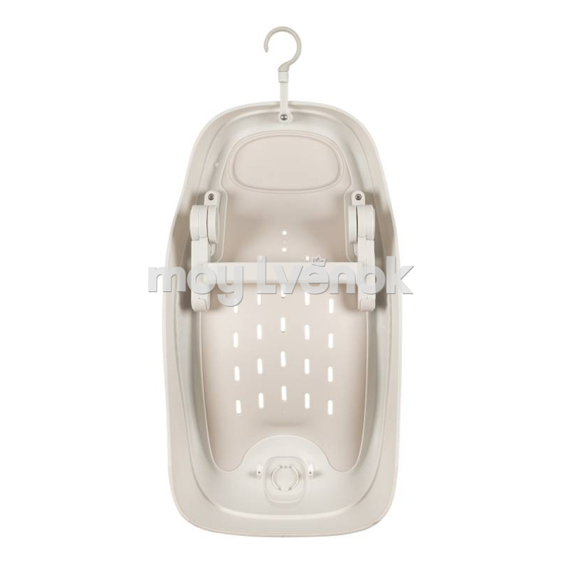 Форма горки повторяет анатомию младенца: ограничитель для ножек минимизирует нагрузку на спинку малыша, а удобный подголовник поддерживает шею. Защитные бортики по краям – мягкие и безопасные. В поверхности горки предусмотрены специальные отверстия для слива воды, она быстро сохнет и устойчива к образованию плесени.
