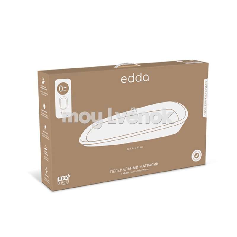 Пеленальный матрасик edda — это практичный и современный аксессуар для ухода за ребёнком. Матрасик выполнен из упругого, гипоаллергенного EVA-материала с эффектом ComfortWarm, поэтому его поверхность всегда мягкая и тёплая. Он прост в уходе: его достаточно протереть влажной салфеткой. Антискользящая поверхность и высокие бортики обеспечивают безопасность и удобное положение во время гигиенических процедур, пеленания или массажа.