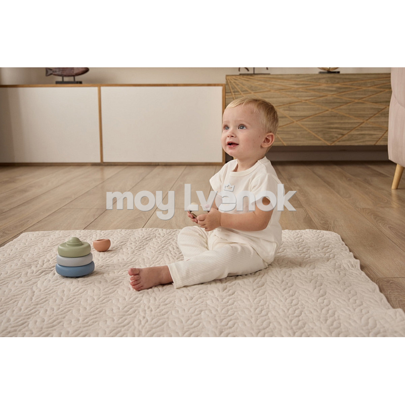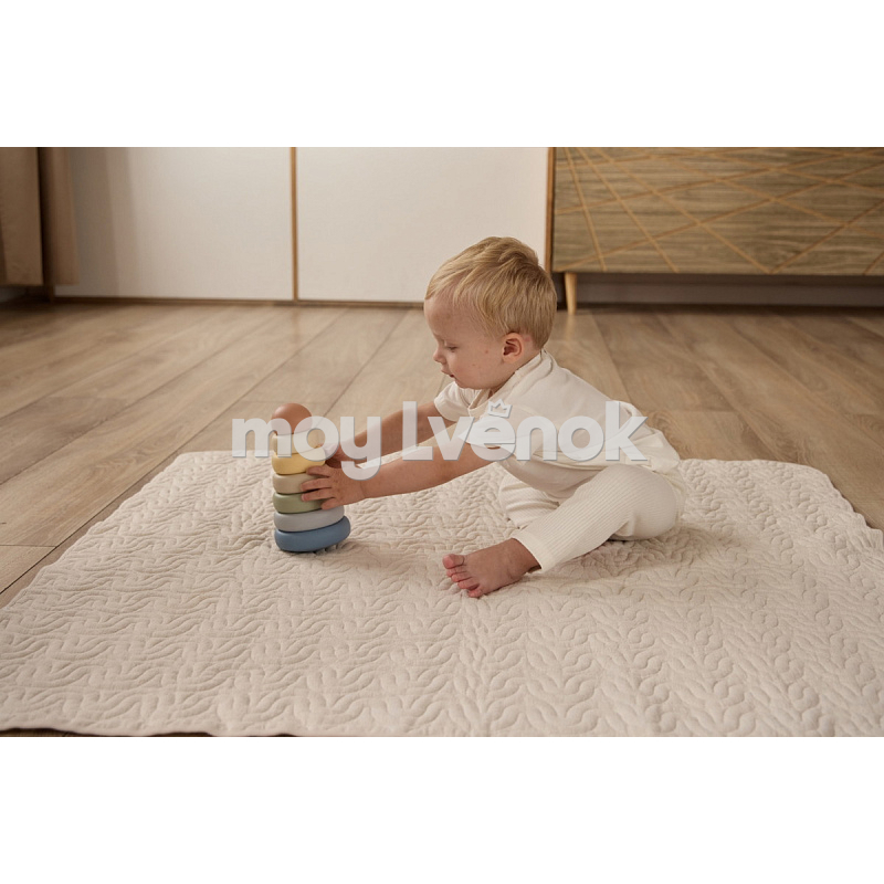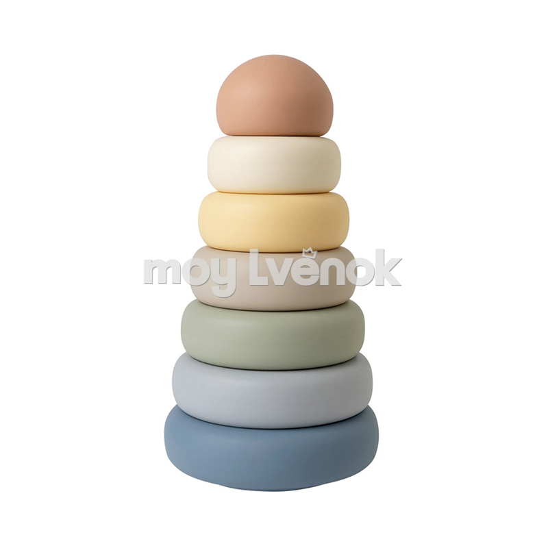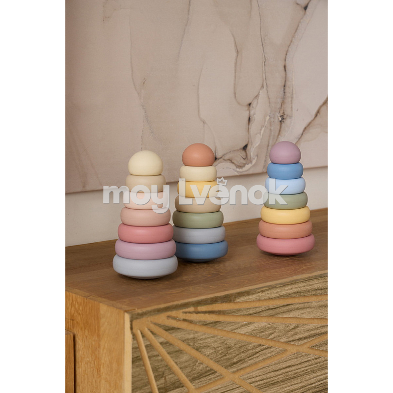 Пирамидка развивает мелкую моторику, логическое мышление и координацию малыша. Мягкая цветовая палитра игрушки гармонично сочетается с интерьером детской.