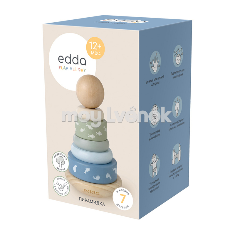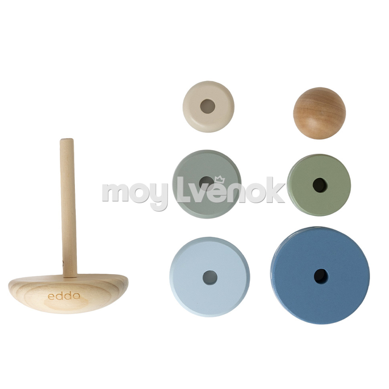 Деревянная пирамидка edda — это эстетика и лаконичный дизайн, сочетающий простые формы и спокойные цвета. Игрушка устойчива в статике, покачивается при небольшом наклоне и возвращается в исходное положение, поэтому малышу весело играть с ней снова и снова. Пирамидка в нежных оттенках помогает малышу развивать координацию, учиться сочетать цвета и органично дополняет интерьер. edda — это поэзия современного детства, где хороший вкус прививается с первых дней жизни.