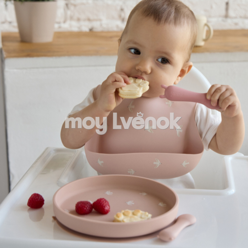 Тарелка выполнена из 100% гипоаллергенного платинового силикона — безопасного, и устойчивого к нагреванию материала без BPA.