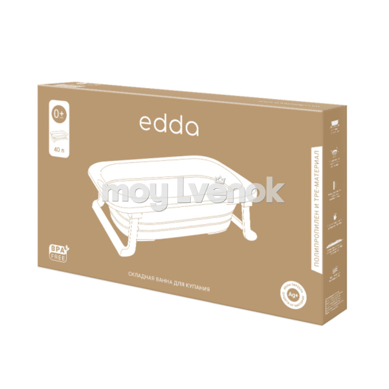 - Для новорождённых ванночка идеально сочетается с горкой для купания edda и подходит для малышей от 0 до 8–9 месяцев.