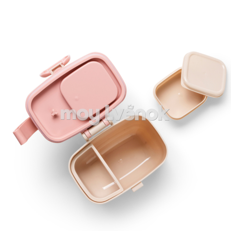 Этот очаровательный контейнер имеет несколько отделений для длительного хранения различных продуктов в отдельности. Крышка снабжена кольцом из пищевого силикона, обеспечивающим полную герметичность и помогающим дольше сохранять свежесть продуктов или закусок.