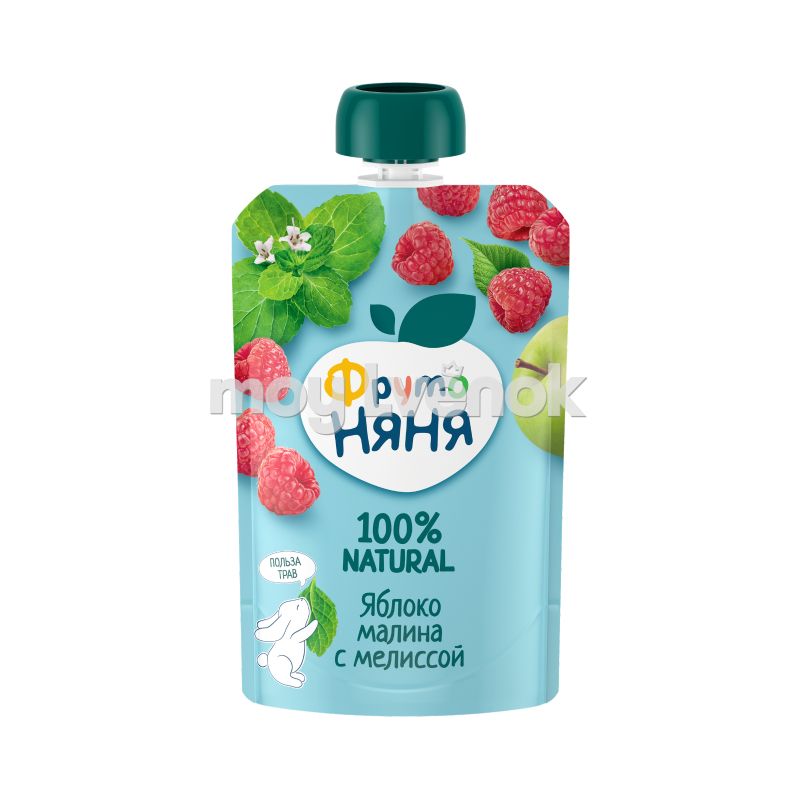Фруктовое пюре в мягкой упаковке «ФрутоНяня» из яблок, малины и мелиссы — это вкусный и полезный перекус, который удобно брать с собой, а яркая мягкая упаковка привлечет внимание вашего малыша и позволит ему есть самостоятельно.