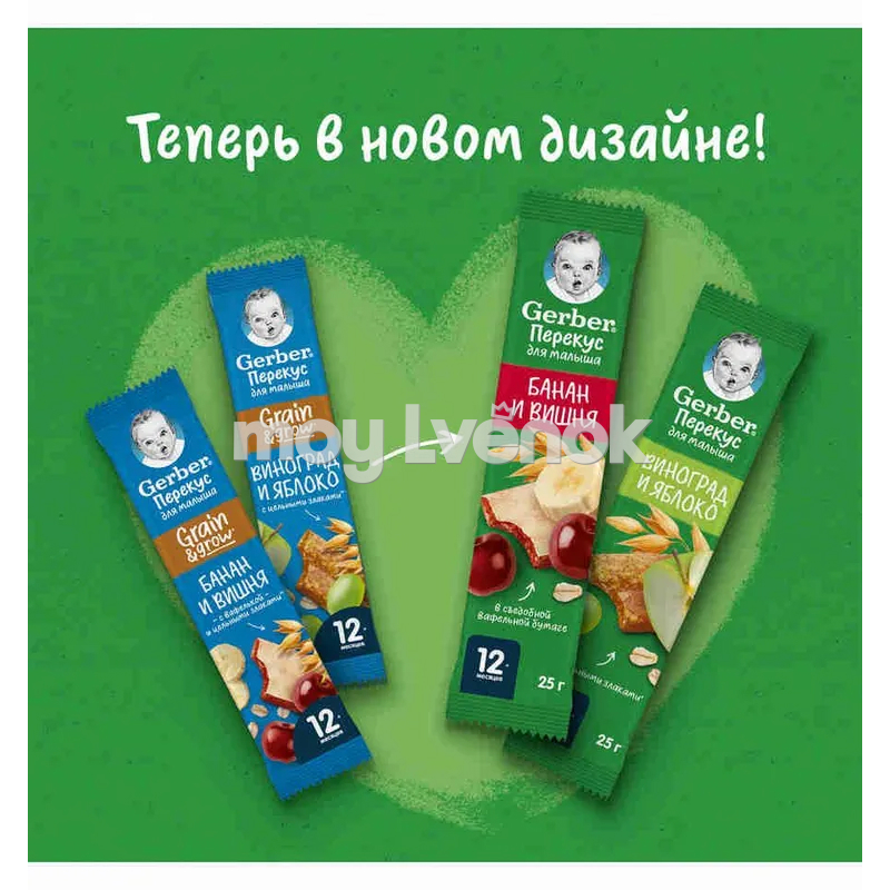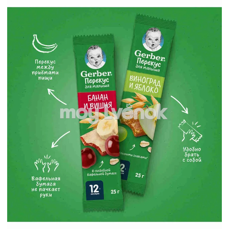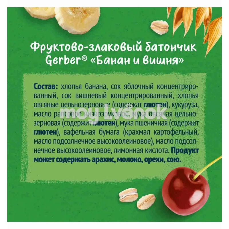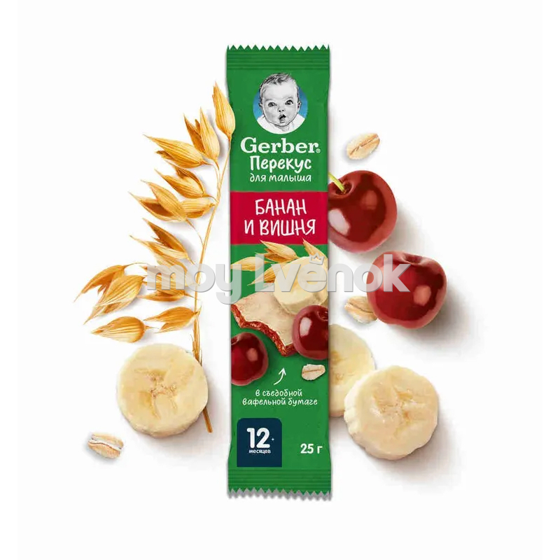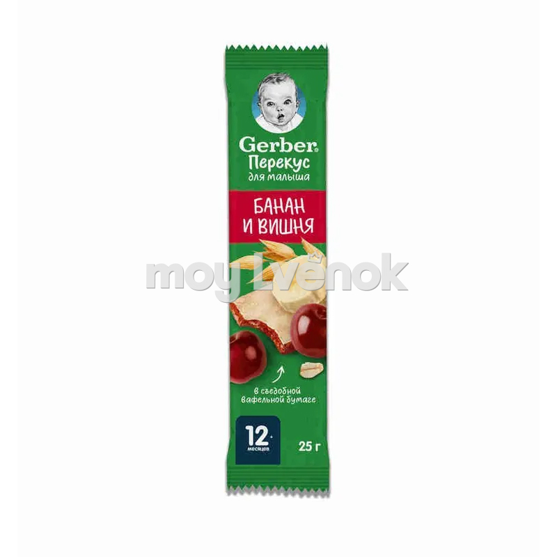 Gerber Фруктово-злаковый батончик с вишней и бананом 25 г. для питания детей старше 12 месяцев согласно законодательству РФ.