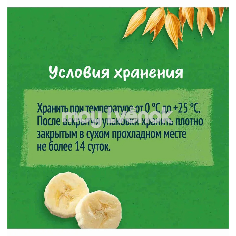 Состав: хлопья банана, сок яблочный концентрированный, сок вишневый концентрированный, хлопья овсяные цельнозерновые (содержат глютен), кукуруза, масло рапсовое низкоэруковое, мука овсяная цельнозерновая (содержит глютен), мука пшеничная (содержит глютен), вафельная бумага (крахмал картофельный, масло подсолнечное высокоолеиновое), масло подсолнеч- ное высокоолеиновое, лимонная кислота. Продукт может содержать арахис, молоко, орехи, сою.