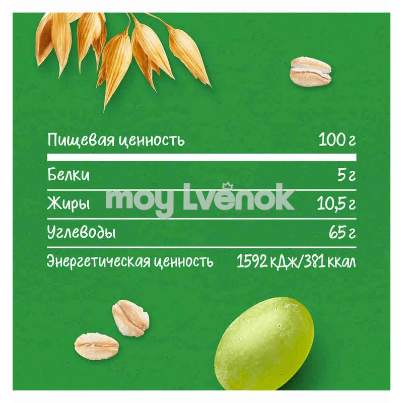 Состав: сок виноградный концентрированный, хлопья овсяные цельнозерновые (содержат глютен), сок яблочный концентрированный, мальтодекстрин, масло рапсовое низкоэруковое, мука овсяная цельнозерновая (содержит глютен), мука пшеничная (содержит глютен), хлопья банана, хлопья яблока, эмульгатор (лецитины) (содержит сою), крахмал кукурузный, загуститель (пектин), антиокислитель (концентрат смеси токоферолов). Продукт может содержать арахис, молоко, орехи.