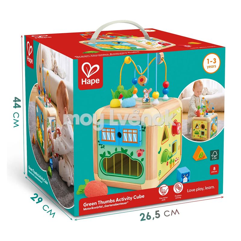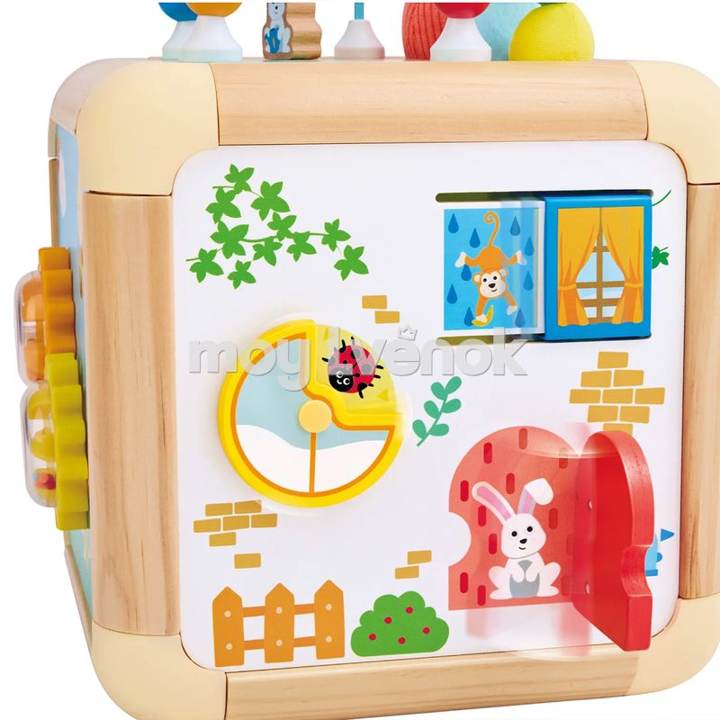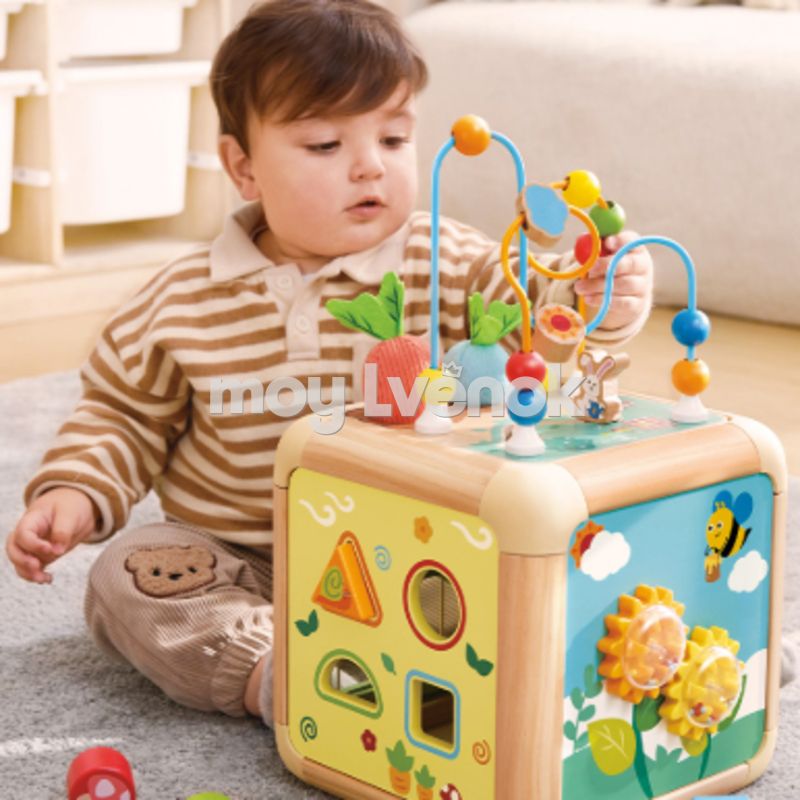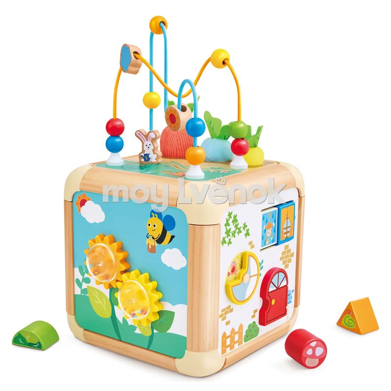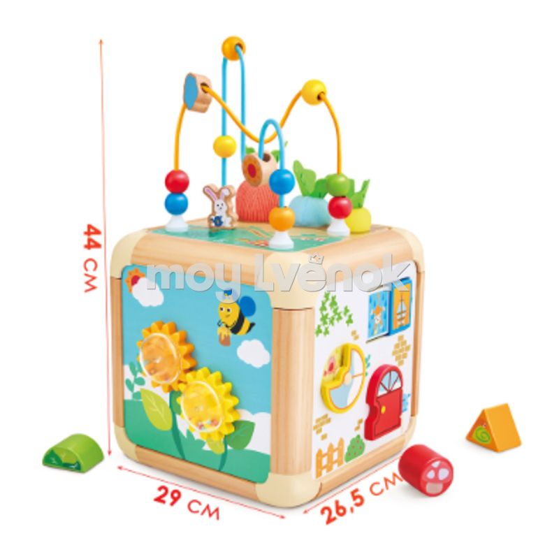 Яркий развивающий кубик в стиле эко-фантазии подарит вашему ребёнку часы захватывающей игры и активного развития.