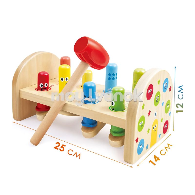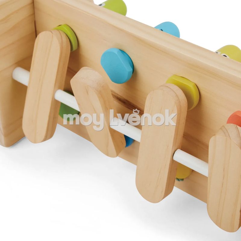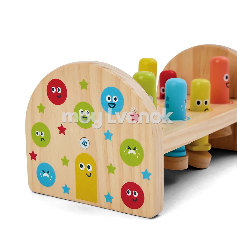 - Благодаря встроенному механизму качелей, каждый удар молоточком поднимает противоположную палочку, создавая увлекательную игру для малыша.
