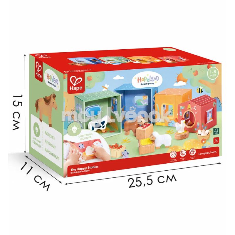 - Все наборы серии Hape Land созданы с акцентом на активное участие детей, рассказывание историй и эмоциональную связь между ребенком и игрушкой, что положительно влияет на когнитивное развитие вашего малыша.