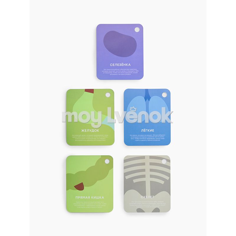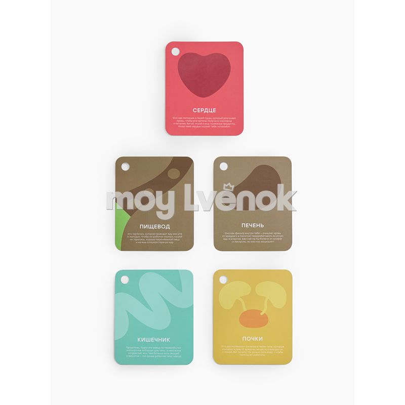 Разноцветные карточки с органами: делают игровой процесс более увлекательным и познавательным.